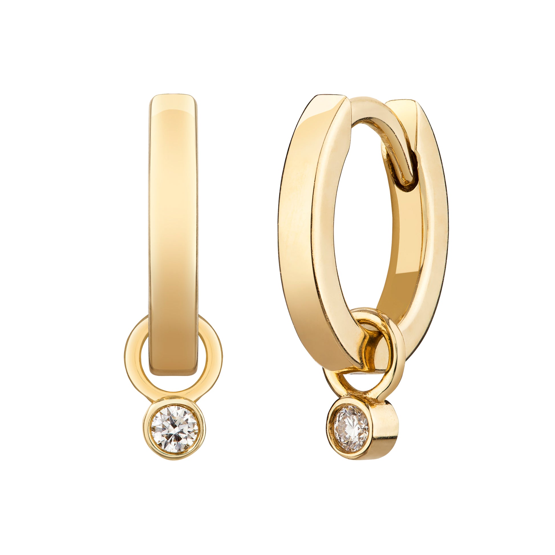Discover the Ever charm hoop earrings, crafted from 14k recycled gold. Featuring removable 2mm lab diamond charms, these versatile hoops let you switch between a sparkling, elegant look and a minimalist style. Perfect for any occasion, they combine timeless design with sustainable materials to enhance your everyday elegance.